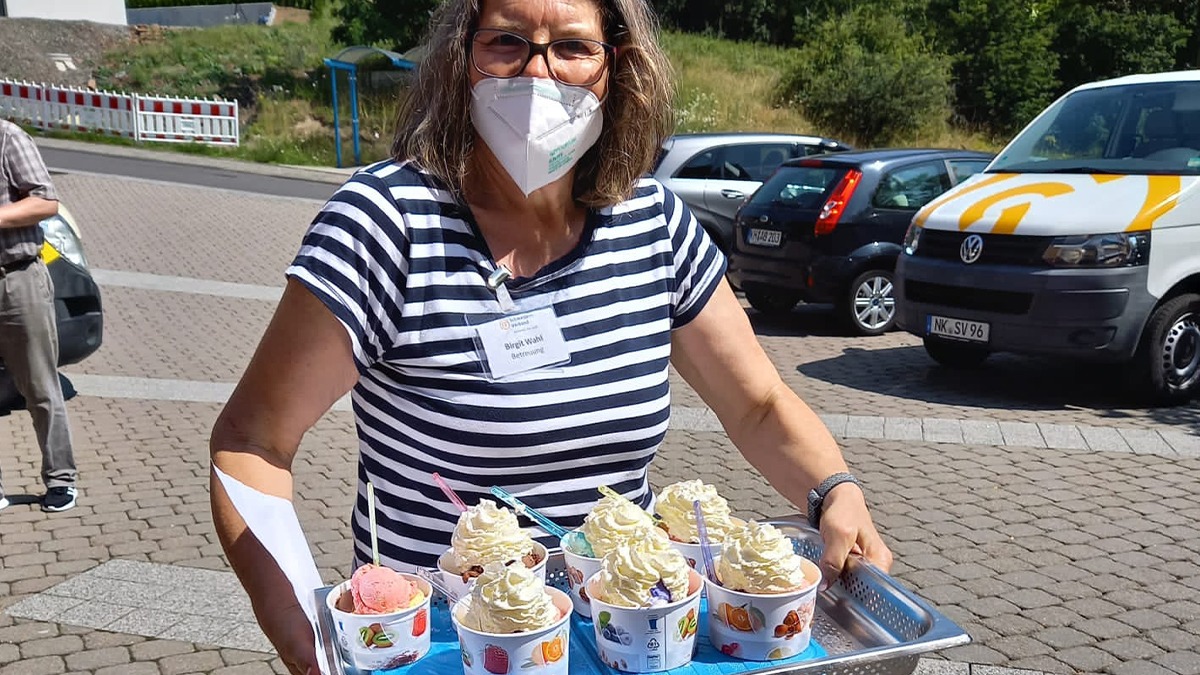 SWR 4 macht´s möglich – mit einem Privat-Konzert im Hof der Einrichtung überraschte der Schlager-Radiosender des Südwest-Rundfunks die Bewohner*innen des „Haus Göttschied“ in Idar-Oberstein. Auch an die Senior*innen, die bei diesem herrlichen Wetter ihre Zimmer aus gesundheitlichen Gründen nicht verlassen konnten, wurde gedacht. Bei geöffneten Fenstern oder von den Wintergärten aus konnten auch sie dem energiegeladenen Konzert lauschen. Aber das war noch lange nicht alles, denn nicht nur für den Hörsinn sollte dieser Tag ein Genuss sein. Auch der Geschmackssinn wurde nicht vernachlässigt und für alle gab es leckeres Eis von der Eisdiele „San Marco“. Herzlichen Dank für dieses tolle Überraschungsprogramm und die wirklich gelungene Abwechslung!